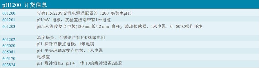 pH、氧化還原電位、溫度。pH1200可提供以YSI品質(zhì)的pH或氧化還原電位的實驗室測量。圖為儀器和170電很座。
