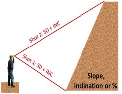 測(cè)量模式: 水平距離、垂直距離、斜距和傾斜角(或百分比斜率)